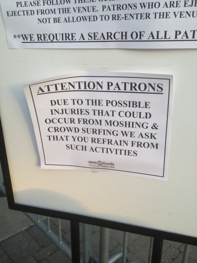 Sign a venue put up at a punk rock concert. Yeah sure punk rockers will follow your rules. Bahaha!