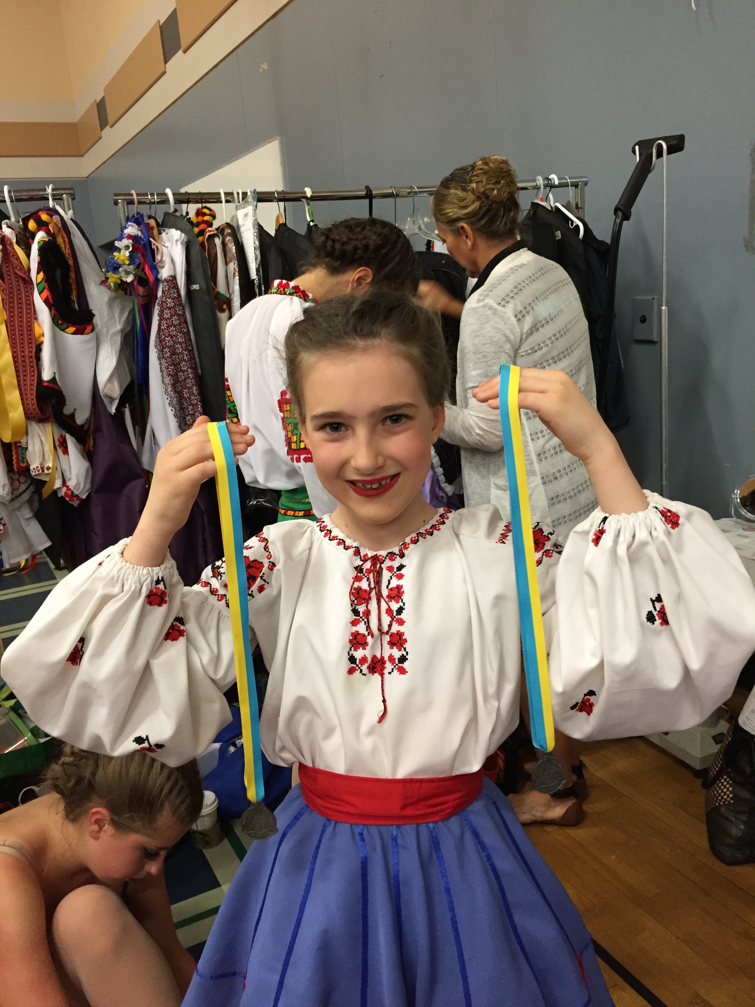 We got into the hotel at 11:30pm, and we were up at 6:30am to get her into full hair, make-up and costume to be at the theatre by 8am. Even with a miserable night’s sleep, and on a sprained ankle, she got a silver medal for both of the dances she performed.