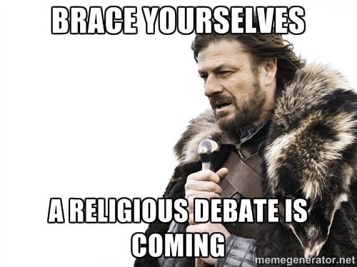 I have been exposed to two of the major religions popular in Europe and North America, having been raised in a mixed-religion family. I found this background enlightening to focus on the similarities in religions, rather than focusing on a more exclusionary “us and them” approach that many one-religion families may inadvertently develop. And I really enjoy discussion and debate about religious thought, when done respectfully. No really, I do love hearing about the opinions and thoughts of my friends and family – religion is not a taboo subject around the dinner table.