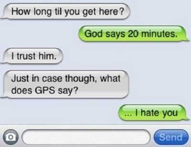 It’s a conscious effort on my part to not blindly follow Linda anymore. But I’ve found out-of-town guests will take the advice of their GPS over our own navigation advice. Even if we’re in the same car. Even if we can save them getting stuck in a traffic jam, or to avoid construction. It’s the religion of the GPS; blind faith has a new home. Good thing my morality isn’t defined by the GPS’s decrees.