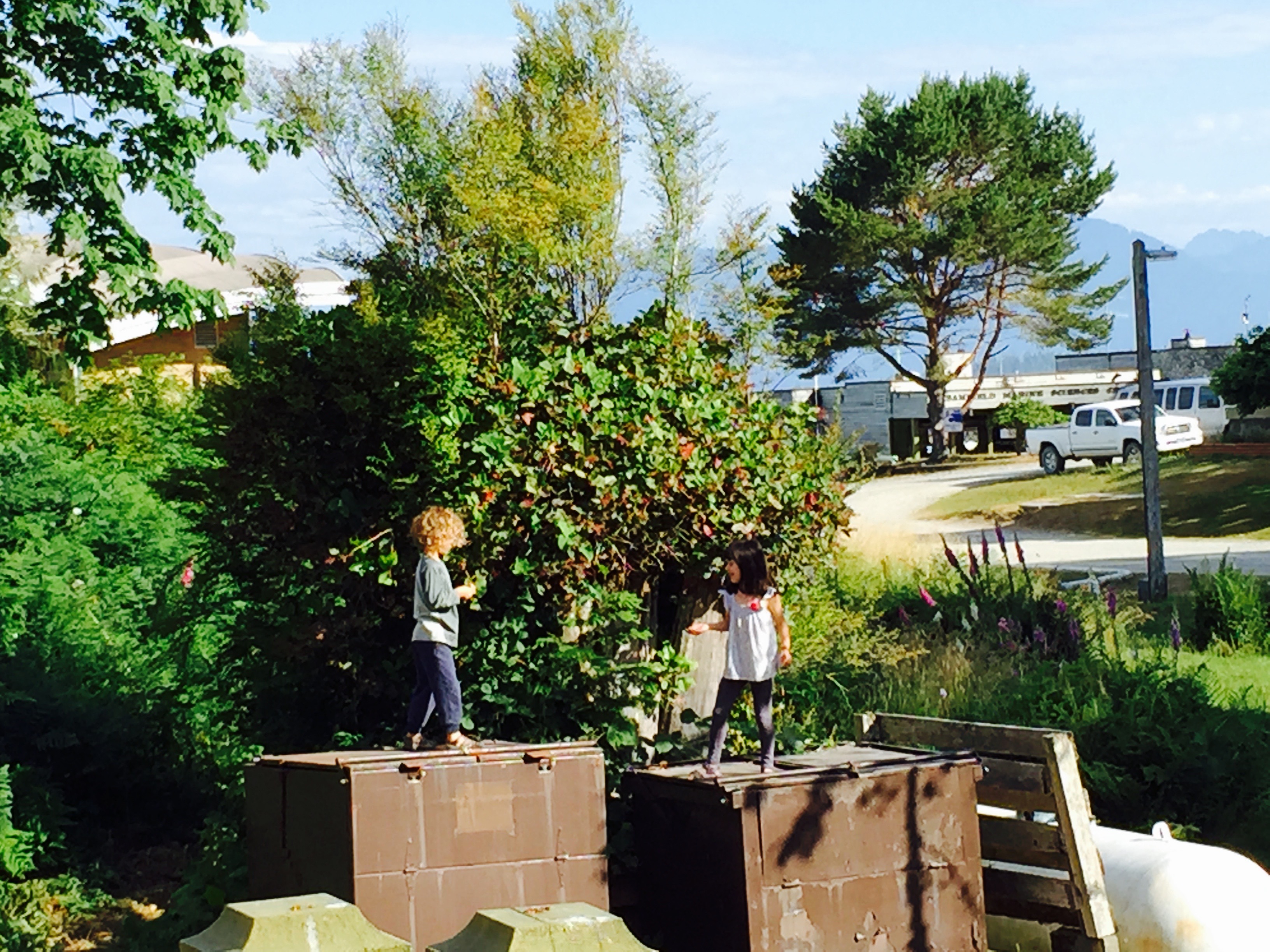 - The kids all play outside without helicopter parents hovering around them. The kids play and make friendships fluidly, amongst the huckleberry-picking and sword-fights made from fallen branches. It’s what I remember childhood being. Even climbing on a dumpster is game on.