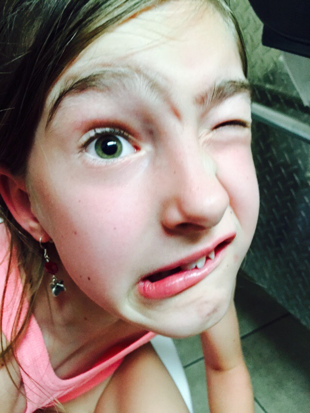 Someone’s mondo dump this morning made us miss our ferry by 2 minutes. But of course once we descended into the Hobbs of Hell (which is Mission, BC – where the temperature was nearly 34 C) she decided it was a great time to pick up where she left off. Besides the fact that it was scorching, and hence the public gas station bathroom reeked, the girls both piled into the same stall with me. So the other 2 of us were trapped in there while this one added to the sweaty stench.