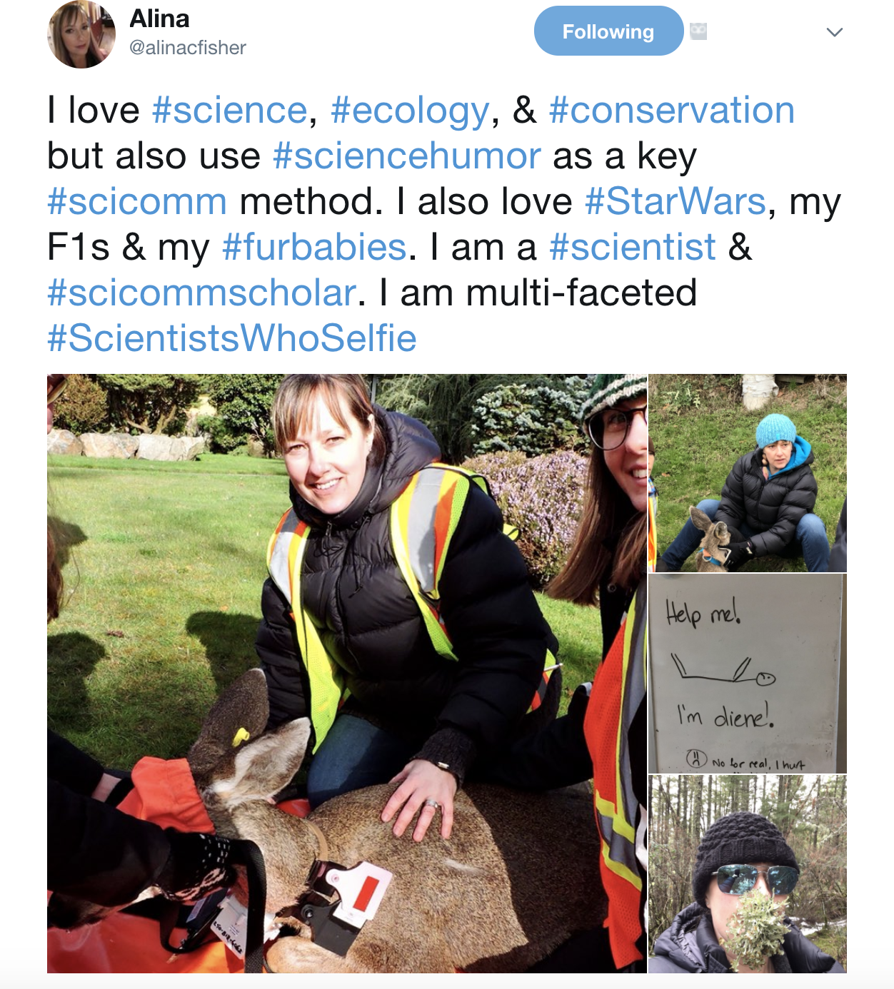 Meghan, of course, can use her social media in any way she likes, and in any way, she’s comfortable with. I also love photography and baking, though I bake much better than I photograph. However, we as women in STEM need to stop judging each other poorly for whether we do or do not use social media for outreach. As a SciComm researcher I’ve seen the empirical benefits to using it for science outreach. I get that it’s not for everyone, and that’s fine. But I hope that by sharing not only the science (and our passion for the science) along with our photography, baking, cats, kids, fitness goals, etc. with non-scientists, I can show that I’m more than just a one-dimensional, and hence unrelatable, scientist.