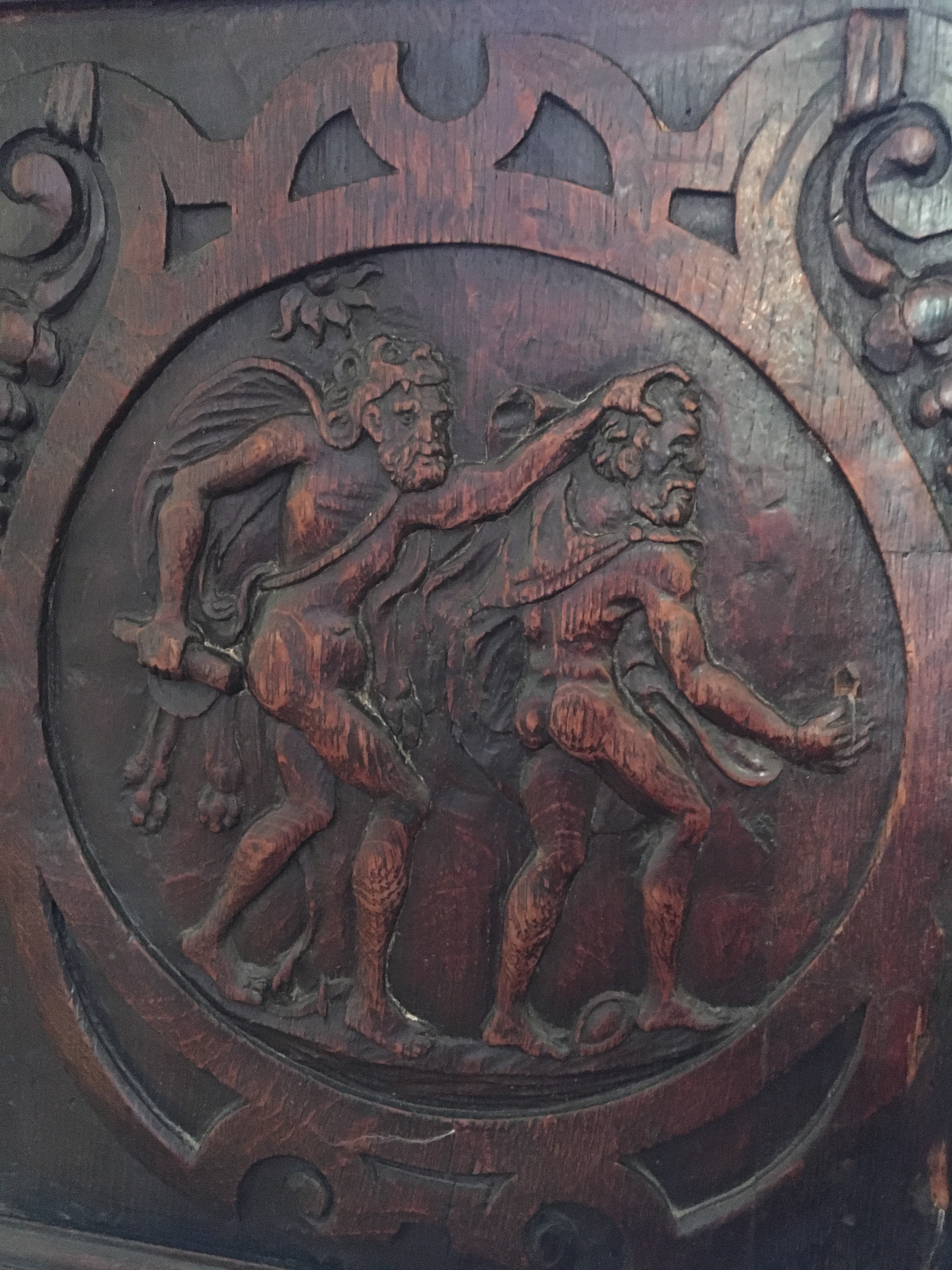 I don’t know what this guy did, but clearly, a reminder of his punishment needed to be carved into a serving hutch.